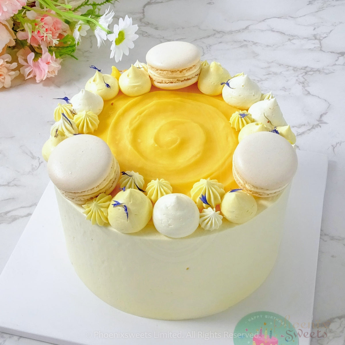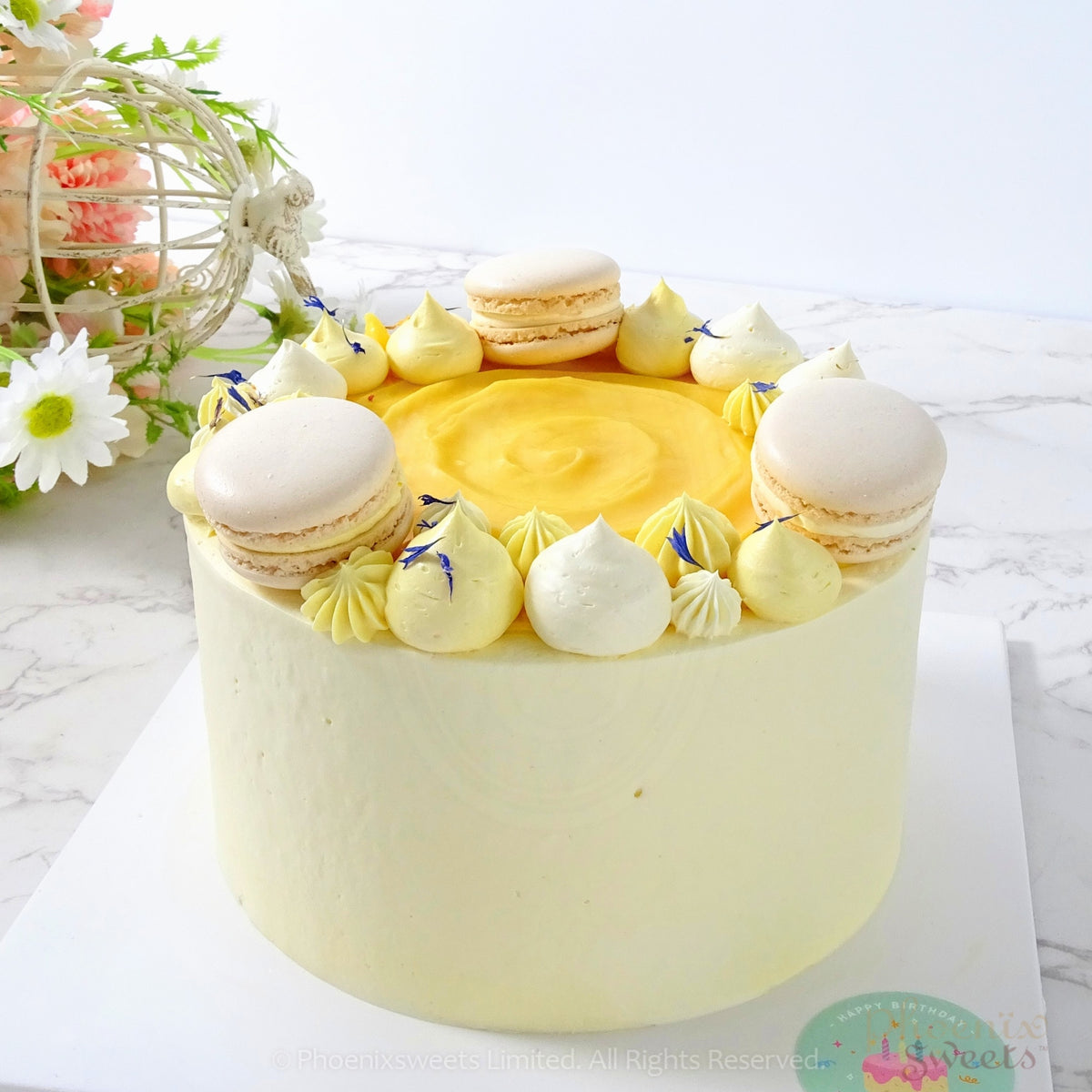 Brighten your day with our delightful Lemon cake at Phoenix Sweets! This refreshing treat features a zesty lemon cake layered with luscious passion fruit buttercream, creating a perfect balance of tart and sweet. Crafted with Japanese flour and large American eggs, our cake offers a light and fluffy texture, making it an ideal choice for those who prefer a less sweet indulgence. Perfect for any celebration or a refreshingly sweet treat!