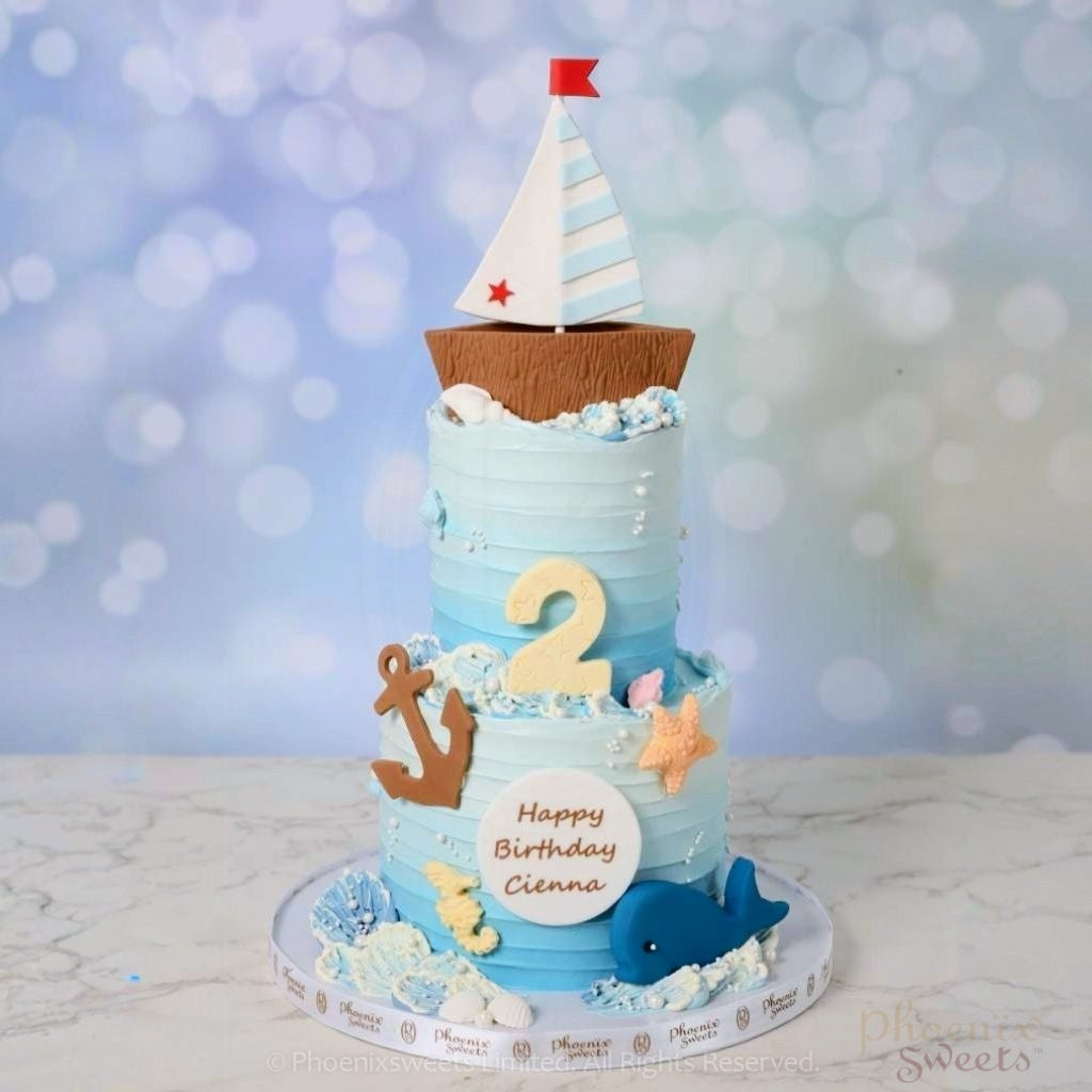 揚帆啟航,品味優雅!Butter Cream Cake – Happy Sailing 採用海洋為設計靈感,結合頂級材料與精緻工藝,創造出一款完美的慶典蛋糕。