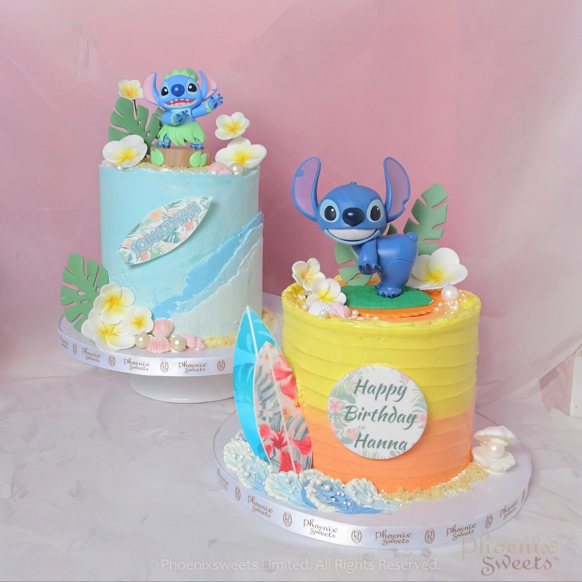 為你的派對注入夏日熱情與童趣驚喜!Phoenix Sweets 以迪士尼人氣角色史迪仔(Stitch)及 海洋奇緣 Moanna 為靈感,特別呈獻【夏威夷滑浪主題蛋糕】,將繽紛海灘與俏皮滑浪主題完美融合,不論大人或小朋友生日派對都必然成為全場矚目焦點。