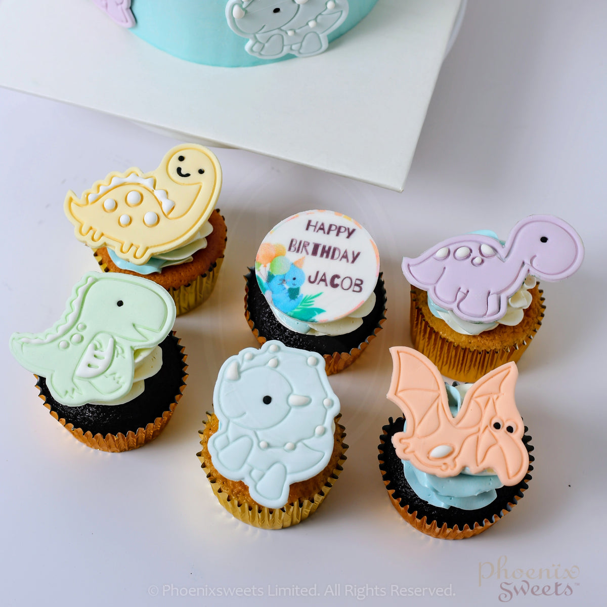 The combo includes a Cute Dinosaur cake and 6pcs Cute Dinosaur cupcake.
